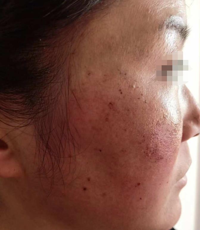 在调节之后整个面部有一点红肿的现象,有斑点的位置,有很明X的结痂状态,医生说需要等待结痂脱落之后才可以祛斑的果。回去之后一直忍不住用手去抠,但是又担心留下疤痕,所以每天都在克制,太难受了。