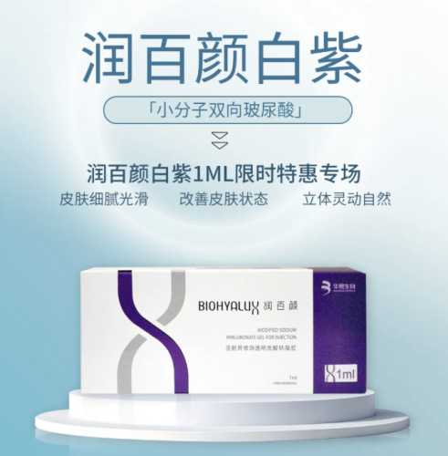 润百颜白紫 | 小分子双相 | 柔软 | 面部中度皱纹、浅层凹陷填充 | 4-6 个月 | 680-1800 |